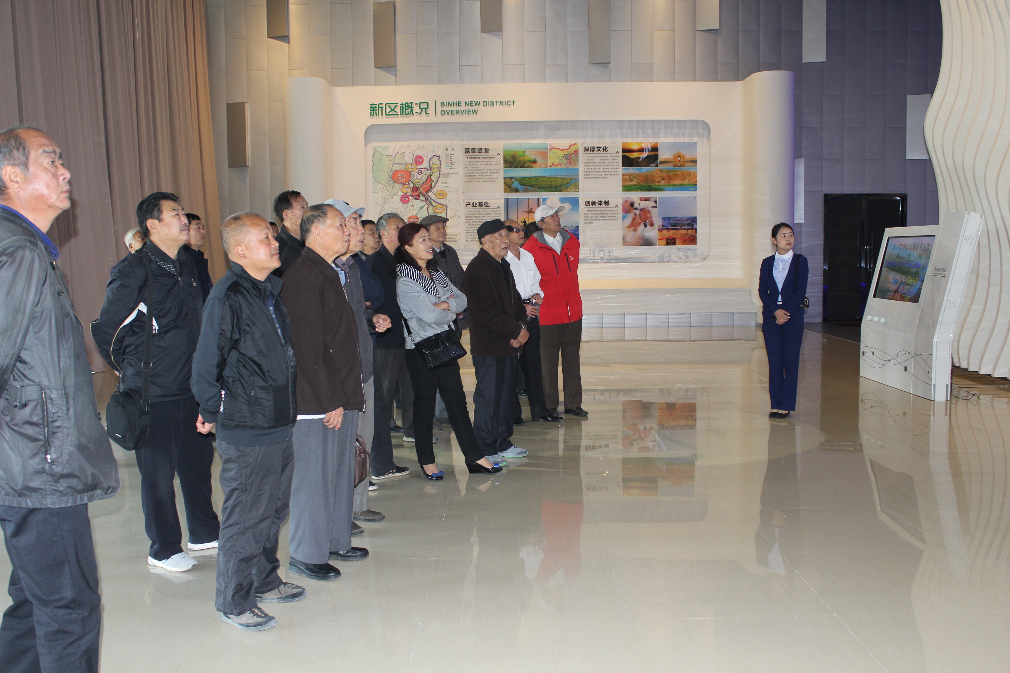 汪斌副院长陪同离退休老职工一起在滨河新区规划展示馆观参观