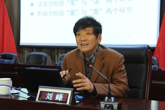 刘峰教授以《提升领导力和执行力》为题,从领导力的构建和领导力的提升两个方面,以成熟的理论体系、渊博的知识、详实的实例,灵活运用语言技巧,充分展现了智者的无尽魅力。