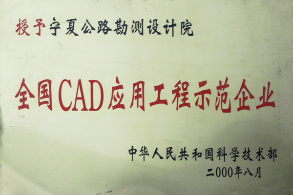 2000年8月全国CAD应用工程示范企业