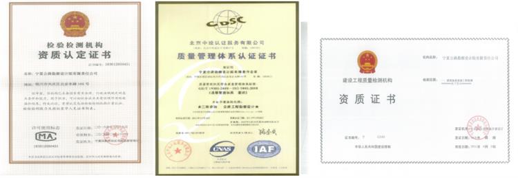 工程质量检测资质认证书