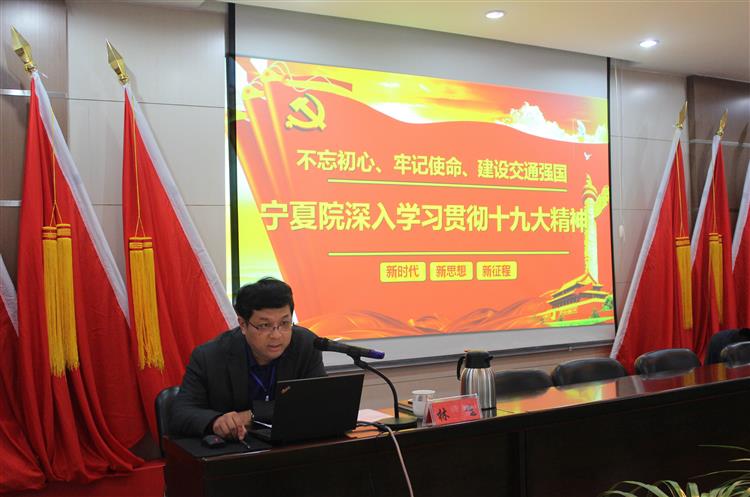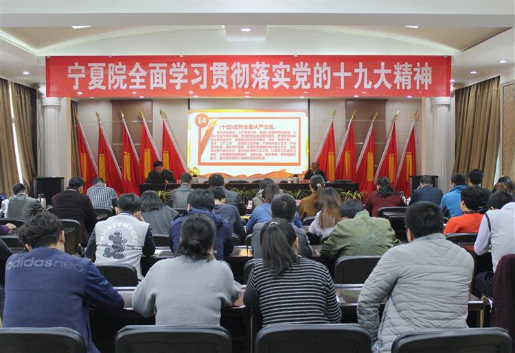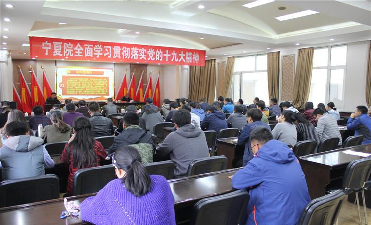 11月6日,宁夏院召开全体党员大会,学习贯彻党的十九大精神,院党委书记林飞同志组织大家专题学习十九大报告,院党委副书记、纪委书记汪斌同志主持会议。