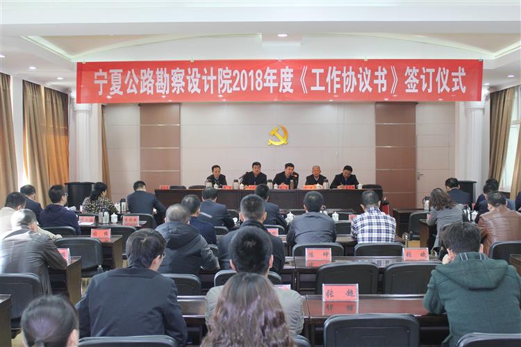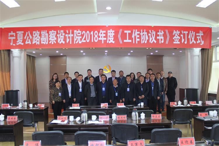为持续推进宁夏公路勘察设计院快速稳健发展,立足新起点、创造新辉煌,2018年度工作协议和党委意识形态、社会综治等责任书签订仪式于3月7日在公司二楼会议室顺利举行。参加本次仪式主要有院领导、各部门负责人,以及副总工程师等相关人员。