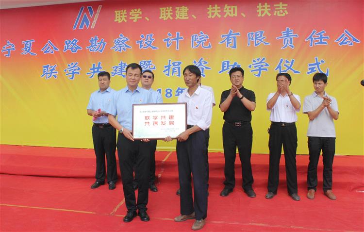 在签约仪式上,宁夏公路勘察设计院党委委员、管理第一支部书记张来虎与固原市西吉县吉强镇大营村党支部书记王海忠签订了“联学共建”协议书。随后,院党委委员、副总经理赵旭东代表公司向大营村捐赠人民币五万元及部分办公电脑,希望能为大营村党支部配置一间崭新的、功能齐备的党建活动室。大营村为表示感谢,授予宁夏公路勘察设计院“联学共建,共谋发展”的牌匾。
