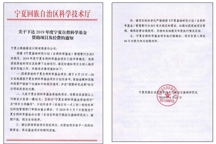 近日,根据宁夏自然科学基金管理办公室2019年度申请基金项目的评审结果,以我院为项目依托单位,以生产技术处张继周博士为项目负责人,申报的“六盘山阴湿地区黄土-泥岩边坡坡体水运移机理和疏排措施研究”(项目编号:2019AAC03261)获得宁夏自然科学基金资助项目立项,实现了我院宁夏自然科学基金项目“零突破”,填补了我院此级别项目的立项空白,这也标志着我院纵向科研项目的开展实施迎来新的重要发展契机。