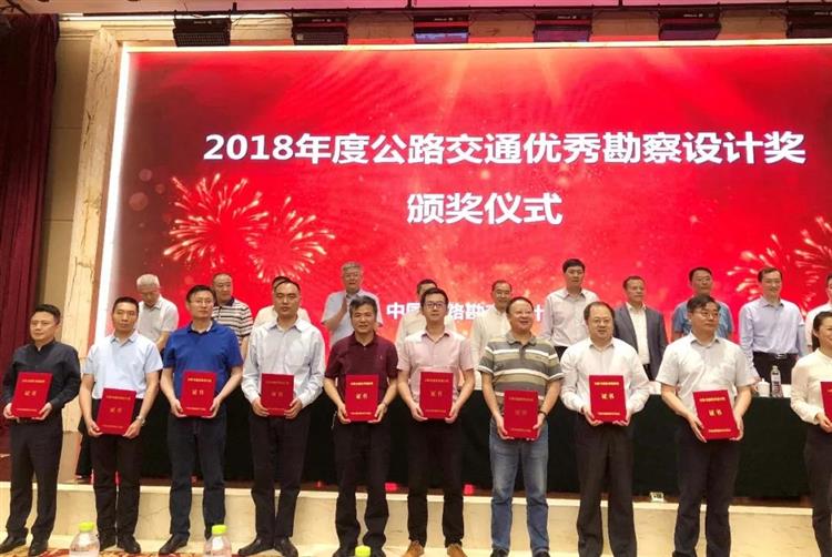 本次大会表彰了2018年度公路交通优秀勘察设计奖获奖单位,中设设计集团共荣获设计一等奖一个,设计二等奖两个,勘察二等奖一个,其中交通设计研究院“常州至溧阳高速公路项目”获得优秀设计一等奖;交通设计研究院“南京机场高速公路翠屏山互通至机场段改扩建工程”获得优秀设计二等奖;南通分公司参与设计的“临海高等级公路南通段”获得优秀设计二等奖;交通设计研究院“常嘉高速公路昆山至吴江段项目”获得优秀勘察二等奖。