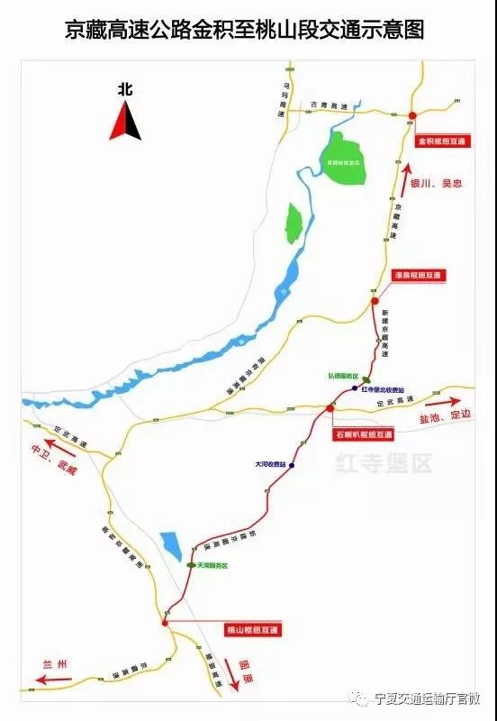 银川、吴忠前往中宁、中卫、武威方向的车辆走原京藏高速公路;固原、兰州前往中卫、中宁、武威方向的车辆走原京藏高速公路。