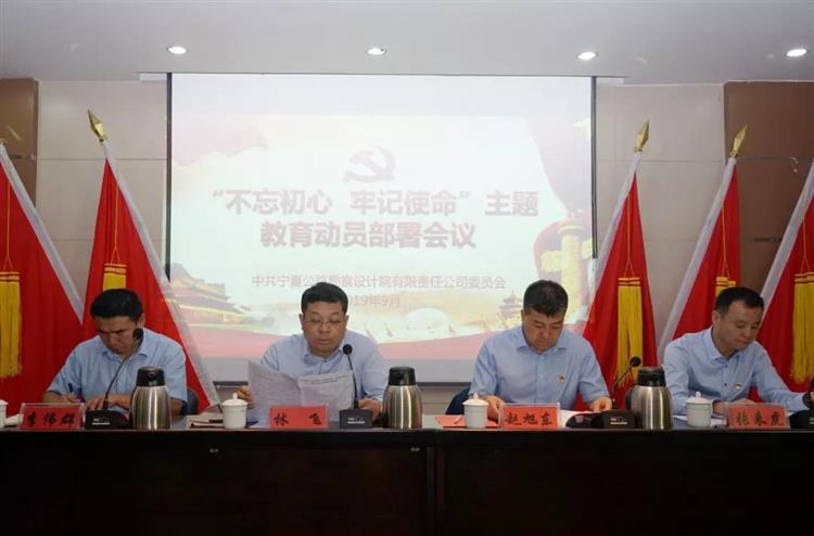 本次会议的主要任务是深入学习贯彻党中央、自治区、银川市交通运输局党委部署要求,并对设计院开展“不忘初心、牢记使命”主题教育进行安排部署。