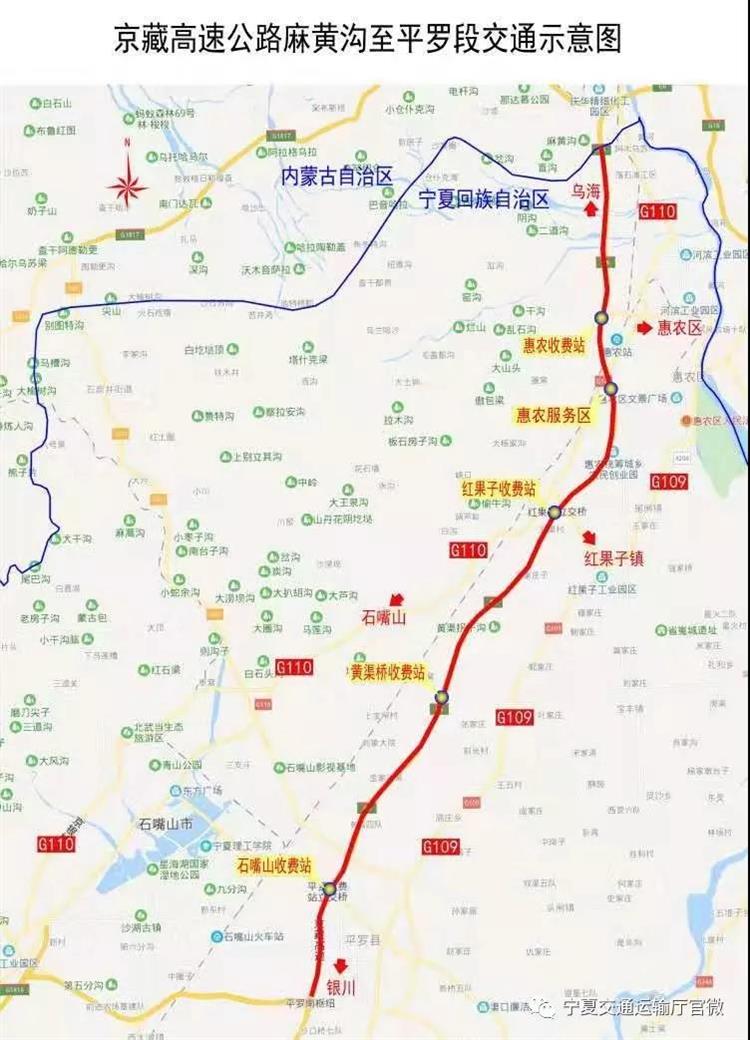 京藏高速公路改扩建工程麻黄沟至平罗段全幅路段将于10月18日上午10:00时试通车。