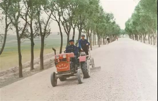20世纪80年代,养护工人在309国道上用拖拉机养护公路。