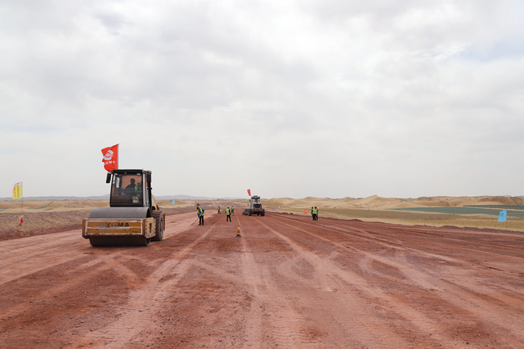 路基填筑材料采用风积沙填筑,实现就地取材,变废为宝,在保障良好工程质量的前提下,极大的降低了工程造价。根据沙生植物物候等生物学特征进行科学配置,实现沙漠路段防护带“三季有花,四季有景”的景观效果,将该项目沙漠路段建造成绿色环保的“生态廊道”。