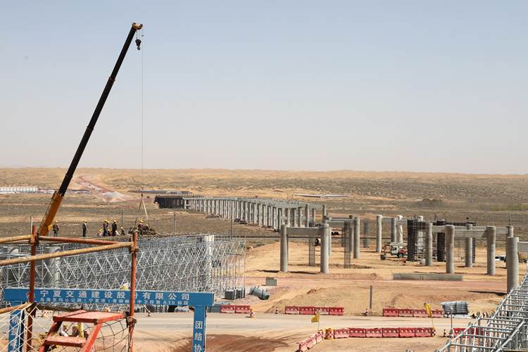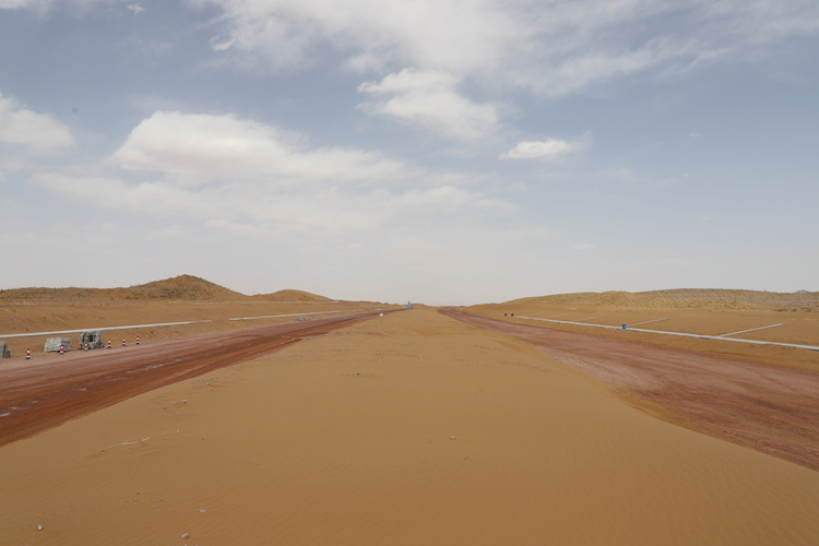 腾格里沙漠是中国四大沙漠之一,自然环境极其恶劣,降雨量小,蒸发量大,气候温差大,沙丘链分布错综复杂,风沙频繁,风沙危害严重。恶劣的自然环境和复杂的工程地质条件该项目的建设带来了极大的挑战。