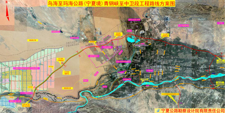 据了解,乌海至玛沁公路青铜峡至中卫段工程采用双向四车道高速公路标准建设,设计速度100公里/小时,路基宽度26.0m。目前,石嘴山至银川段、银川至青铜峡段已陆续建成通车,青铜峡至中卫段正在建设中,拟于2020年年底建成通车。建成后,将基本实现乌玛高速公路宁夏境路段的全线贯通。该段路线起自青铜峡市同兴移民村西,经青铜峡、中卫,穿越腾格里沙漠后,于中卫市沙坡头区顺接定武高速,主线全长122.9公里,其中需穿越腾格里沙漠腹地18公里,是国内首条穿越沙漠腹地的高等级公路。