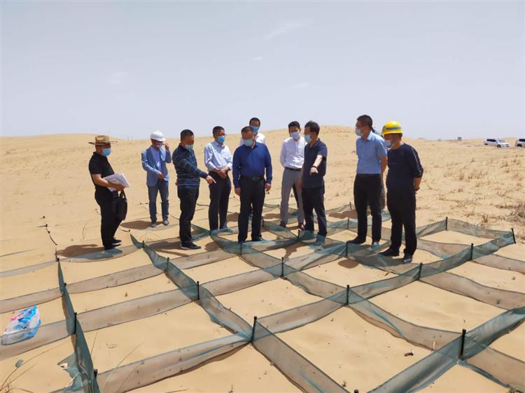 调研组观摩风沙工程防护体系建设