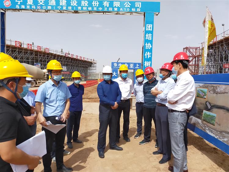 2020年5月14日,宁夏交通运输厅党委书记、厅长曹志斌对乌海至玛沁公路(宁夏境)青铜峡至中卫腾格里沙漠段工程进行现场调研,深入了解项目建设与科研进程,与参建及参研单位进行了深度交流。