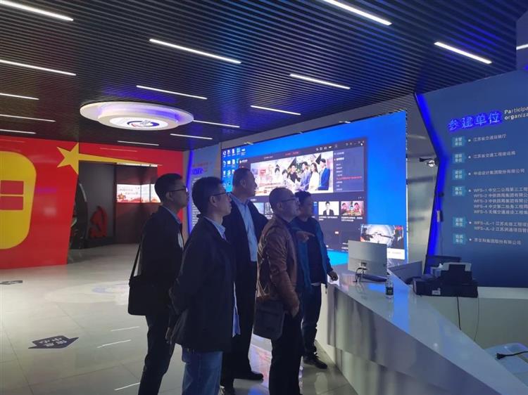 在五峰山过江通道项目现场,一行人参观了全国首条“未来高速”。该工程被列为交通部“品质工程”示范项目,项目施工采用“工厂化、精细化”、项目管理采用“规范化、信息化”、项目运营采用“人性化、智能化”的未来新型高速公路建设理念。
