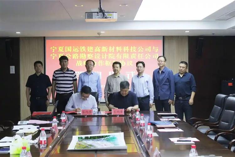 会议最后,宁夏国运铁建高新材料科技公司董事长李志军、宁夏公路勘察设计院总经理赵旭东代表双方签订深度战略合作框架协议。此次签约,标志着双方在基础设施建设领域新材料、新技术、新工艺的研发、生产、销售中全面展开战略合作。