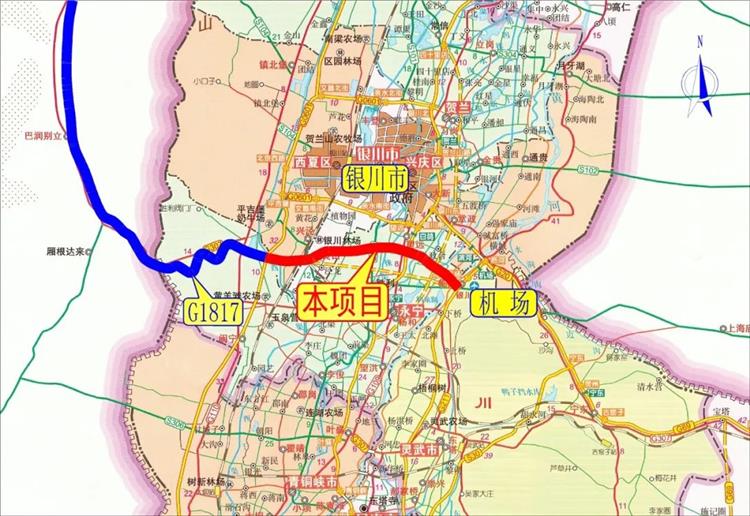 此项目是《国家公路网规划(2013-2030年)》中宁夏境内9条国家高速公路中的一条,也是《宁夏回族自治区省道网规划(2015-2030)》“三环八射九联”高速公路网布局的重要组成部分。宁夏境内主要控制点为宁蒙界(头关)、银川、河东机场。G1817线宁夏境内规划建设里程56km,目前,头关至银川平吉堡段已建成通车23km,剩余平吉堡至河东机场段建设对落实国家“双纲要”精神、完善国家高速公路网络布局、促进宁夏“交通+产业”融合发展等方面具有重要意义。
