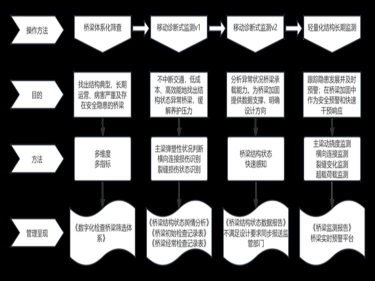 这种“一标两轻”的监测模式与现行的桥梁检查制度相互补充,共同促进桥梁养护管理水平的提升。通过对长期积累的监测数据与桥梁检查结果进行深入分析,优化养护管理流程,将监测工作深度融入桥梁养护和运行管理流程之中,充分发挥监测数据与评估结果的价值,提高决策科学性,保障桥梁长期稳定运行。