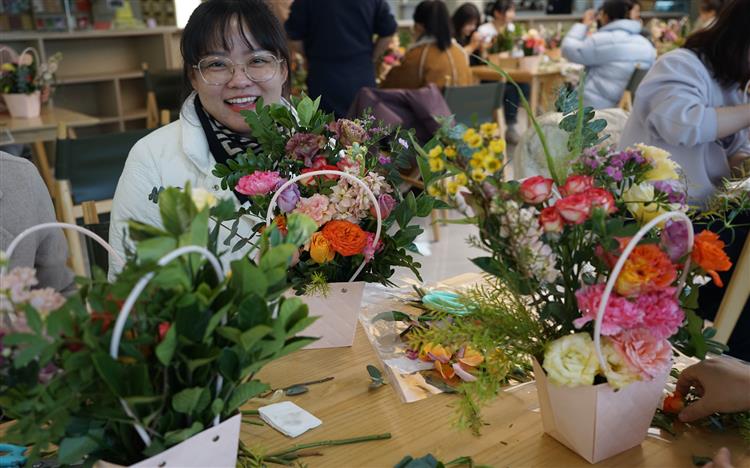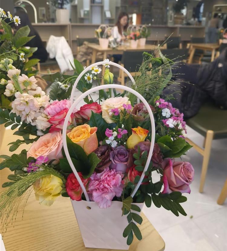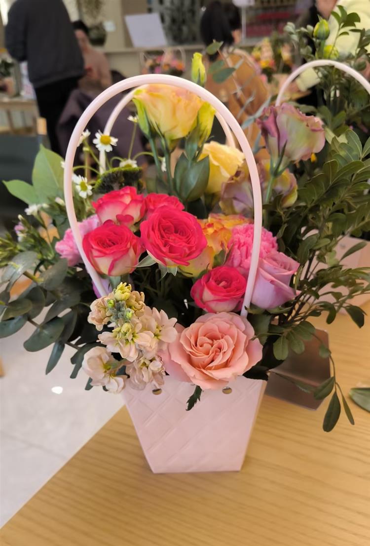 在花艺师的指导下,大家将一朵朵鲜花搭配成独具匠心的花艺作品,感受自然与艺术的完美融合。