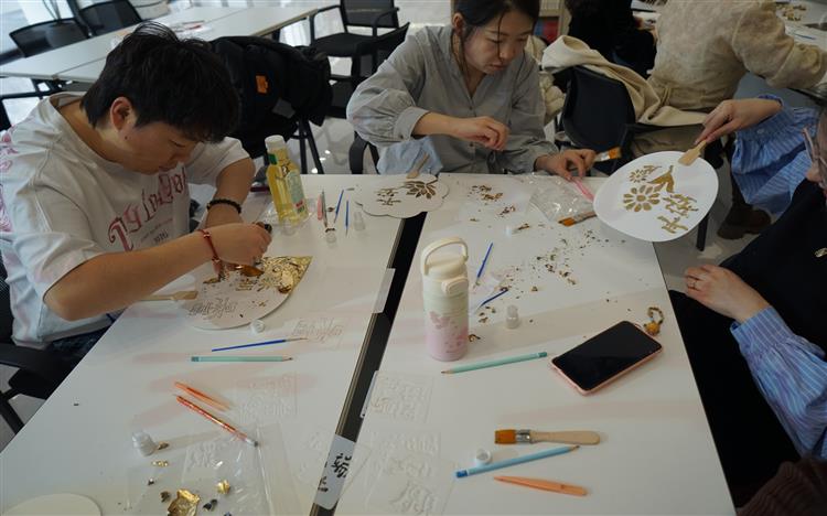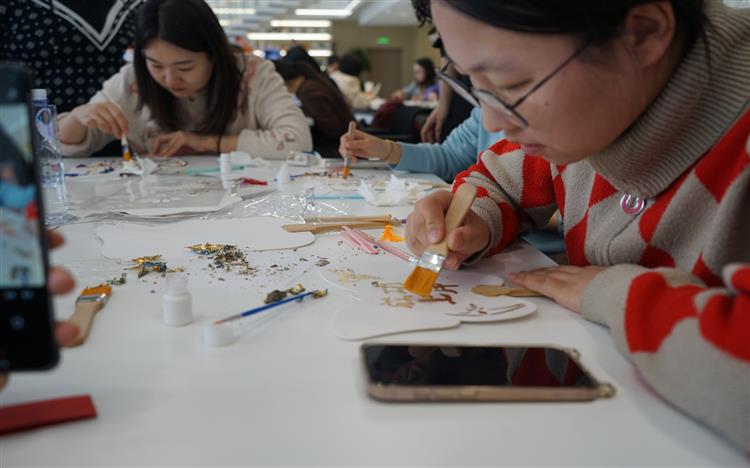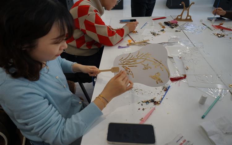 在专业老师指导下,参与者体验了非物质文化遗产—传统金箔工艺,用细腻的手法将金箔点缀在器物上,感受传统手工艺的魅力。
