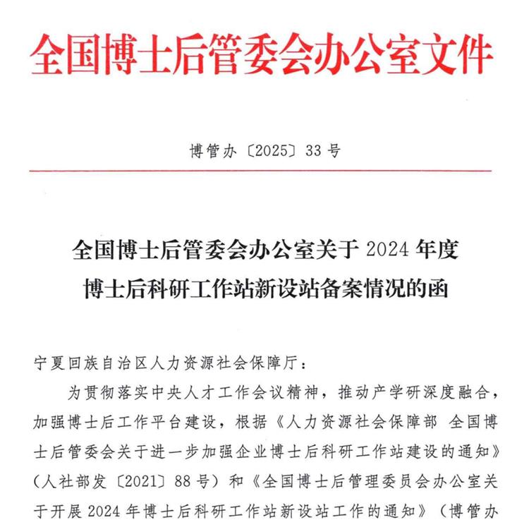 近日,经国家人力资源和社会保障部、全国博士后管理委员会审定,宁夏公路勘察设计院成功获批设立博士后科研工作站。