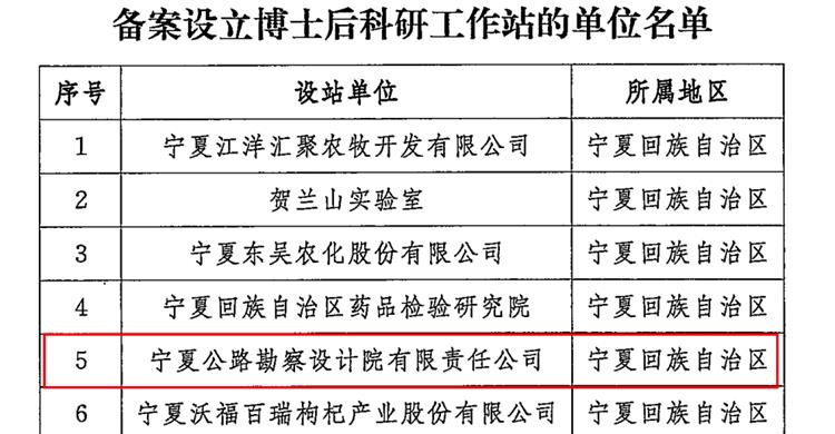 此次获批设立博士后科研工作站,是宁夏公路勘察设计院人才强企战略的重要举措。